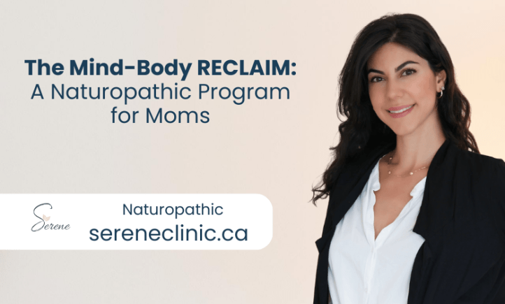 The Mind-Body RECLAIM Program is a 12-week naturopathic metabolic reset designed specifically for moms to restore hormonal balance, improve energy, and support sustainable health changes.